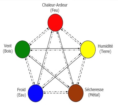 Comme le nombre d'éléments dans ce système est impair (cinq), ce système est asymétrique. Alors, que le système méridien, qui comprend douze canaux principaux (nombre pair), est symétrique. Par conséquent, une compréhension détaillée des principes de contrôle et d'autorégulation des énergies entre-elles, basée uniquement sur la loi des Cinq Eléments, est tout simplement impossible en raison des simplifications et des restrictions inévitables. En se concentrant uniquement sur ces relations fonctionnelles, cette théorie ne prend pas en compte de la présence de l’élément de contrôle des Cinq Eléments, ni n’en détermine sa position. Ainsi, en plus des éléments individuels, tout système autorégulé se doit de comporter un élément de contrôle qui permet à l'ensemble du système de maintenir un équilibre et une harmonie dans ses relations.