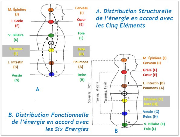 Considérons maintenant la différence entre la distribution structurelle et fonctionnelle avec les trois autres chakras dans les canaux énergétiques.