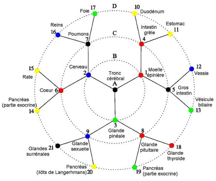Par ailleurs, la similitude est également évidente dans le fait que les reins et le cerveau sont des organes appairés. Le cerveau est situé dans la partie supérieure du corps (énergie de niveau Yang/Hétéro) alors que les reins sont situés sous le diaphragme (énergie de niveau Yin/Homo).