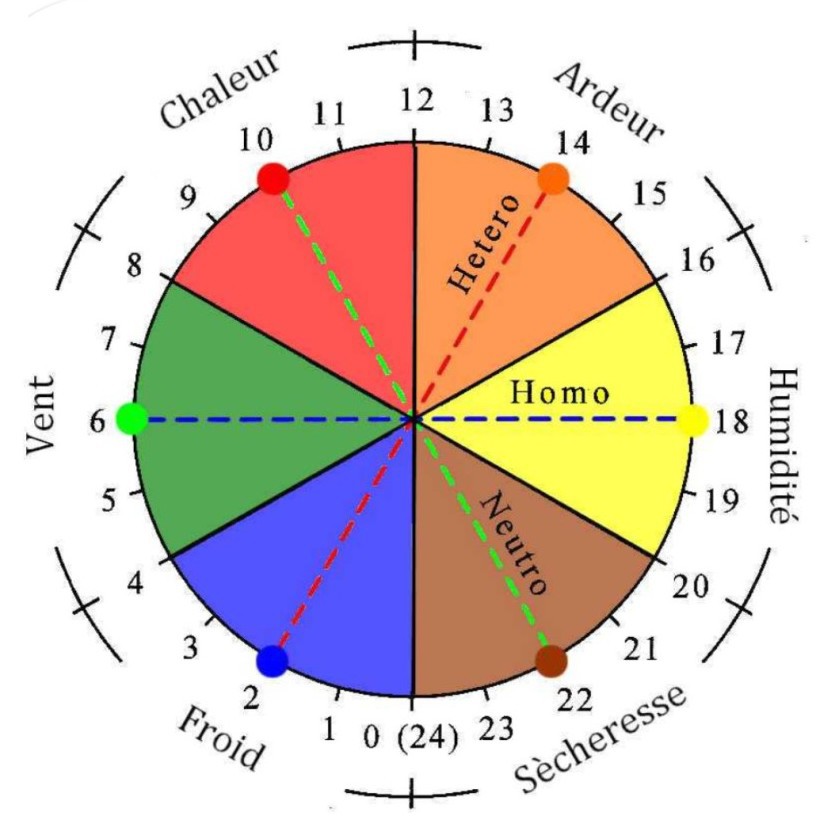 Ici, il est intéressant de constater l'effet de la force Neutro qui diminue les manifestations extrêmes entre les pôles de chaque groupe d’organes appairés Yin-Yang.